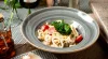 Spaghetti Carbonara TESLA338 dengan saus creamy yang dibuat dari telur organik, keju pecorino, dan smoked beef.